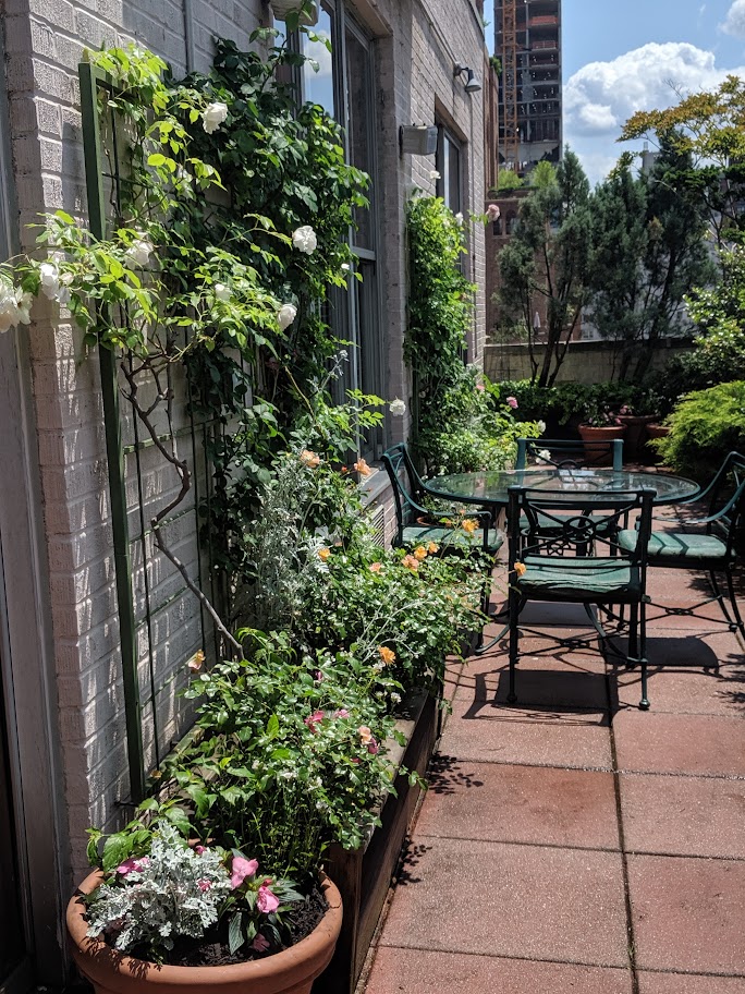 "He listened and we decided a formal garden was what I responded to most. I didn't want a lot of fussy flowers that needed constant changing. Told him how much I love the Tuileres and Luxembourg Gardens in Paris. Turns out he'd been to both and when I came home he had planted stunning boxwood and the most amazing apple espaliers I'd seen in ages. There's still more to do, but we're off to a great start."